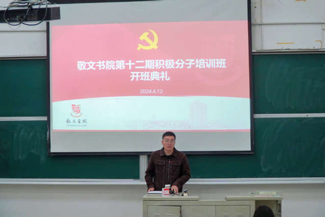 4月12日晚,敬文书院举行第十二期积极分子培训班开班典礼。院党委副书记杜昀、党务秘书李晨以及全体学员参加了开班典礼。典礼开始,全体人员起立奏唱国歌。接着,李晨向全体学员介绍了此次培训的内容、形式、人员分组、考核办法等,并对学员们学习纪律等方面提出了要求。院党委副书记杜昀对通过自身努力、同学认可、书院考察成为入党积极分子表示祝贺,对培训班的课程安排进行了详细说明。希望学员们要坚定入党信念,端正入党动机,让思想认识得到进一步的深化,努力做到在思想上入党;要自我严格要求,做到学思践悟、知行合一,让党性观念得到进一步增强,努力做到在行动上入党。书院本次初级党校共有48课时,包含专题讲座、视频学习、汇报展评、学习研讨、自主调研、项目答辩等多种形式,旨在帮助学员进一步端正入党动机,培养爱党、爱国热情。