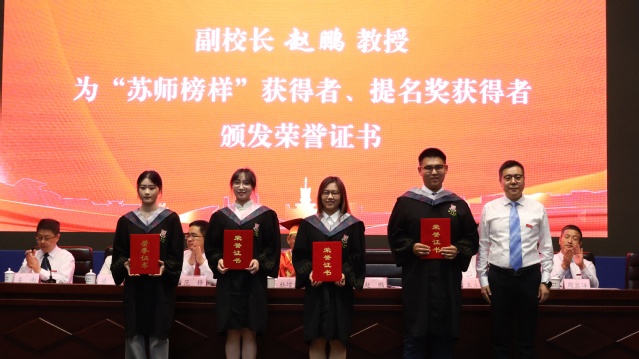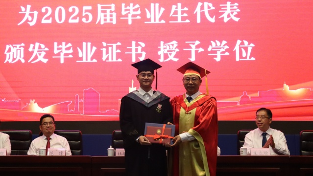四载韶光书锦绣,今朝鹏翼展云天。6月11日下午,江苏师范大学敬文书院2025届毕业典礼隆重举行。校长杜增吉,副校长赵鹏,学校有关职能部门、书院办学相关学院党政领导、导师代表、院友代表、毕业生家长代表等出席典礼。毕业生代表陶凯文,院友代表张雨欣,家长代表沈永兵,导师代表王兴启在毕业典礼上发言。敬文书院院长沈山教授为毕业生送上临别赠言。他回顾了毕业生们在书院的点点滴滴,鼓励他们在未来的人生旅途中,继续发扬敬文精神,为社会作出更大的贡献。四名毕业生以朗诵的方式带领大家重温了在敬文的青春岁月。典礼上,表彰了“四星毕业生”、“荣誉毕业生”和“优秀毕业生”代表。赵鹏副校长为苏师榜样获得者、提名奖获得者颁奖。杜增吉校长为毕业生代表颁发毕业证书、授予学位。杜增吉校长代表学校向圆满完成学业的151名毕业生表示祝贺。面向未来,他希望毕业生们,一是志存高远、心怀家国,做民族复兴的追梦人;二是勇立潮头、追求卓越,做创新发展的排头兵;三是锤炼品格、永不放弃,做百折不挠的攀登者。 (一审:刘星君 二审:刘江 三审:姜南)