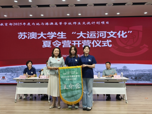 6月3日至10日,由学校港澳台事务办公室指导,敬文书院主办的教育部2025年度内地与港澳高校师生交流计划项目——苏澳大学生“大运河文化”夏令营圆满完成。6月4日上午的开营仪式上,赵鹏副校长出席并致辞。港澳台事务办公室主任、敬文书院师生代表与澳门大学张昆仑书院参营师生出席仪式,仪式由敬文书院院长沈山主持。赵鹏副校长为夏令营开幕致辞,他代表学校对来自澳门大学的老师和同学们表示热烈欢迎。他为与会师生介绍了我校的建校历史及敬文书院的办学特色,讲述大运河江苏段深厚的文化底蕴,希望澳门师生可以充分体验感受徐州、淮安、扬州和镇江四地大运河文化的魅力,领略中华文明的源远流长和中华民族的勤劳智慧,了解伟大祖国的发展成就。沈山院长介绍了世界遗产大运河的历史渊源及本次夏令营的活动安排。双方营员代表先后发言。敬文书院梁译文同学以生动的语言向在座师生讲述了大运河的历史与文化特色,期望与澳门师生在实践中共同领悟文化魅力,收获同伴友谊,留下一段独特的美好记忆;澳门大学张昆仑书院的博士生李锦龙同学表达了对本次夏令营活动的期待,希望以大运河文化为枢纽增强苏澳两地学生之间的交流。随后,澳门大学张昆仑书院副院长邓安琪与书院刘江副院长互赠文创纪念品。港澳台事务办公室主任董海宁为夏令营授旗。体育学院和音乐学院学生带来武术表演和民族音乐。开营仪式后,沈山教授为夏令营开设了首场讲座《大运河的历史功能与现代价值》。营员们从户部山-回龙窝街区的古建筑群中解读运河历史密码,与非遗传承人面对面,体验徐州香包制作。次日,孟召宜教授开设讲座《运河城市徐州:汉文化名城的构建逻辑和实践路径》,组织研讨“我心中的汉文化与大运河文化”,并与营员们共赴新沂窑湾古镇,开展田野调查。离开徐州后,团队在淮安中国漕运博物馆的体会漕运的宏大叙事与精密运作。泛舟里运河,“壮丽东南第一州”的运河脉动直抵营员们心灵深处。在扬州中国大运河博物馆,恢弘的建筑与全景式展陈,沉浸式体验中华运河文明的波澜壮阔。在底蕴深厚的镇江博物馆,丰富的馆藏文物与详实的运河历史展陈,系统梳理了镇江作为重要漕运枢纽和渡口城市的千年发展脉络。行程结束后澳门大学同学纷纷感叹:“运河不再是地图上的线条,它因伙伴们共同的探索而有了温度与情感。”本次夏令营邀请了大运河文化领域的专家学者开设专题讲座,并组织开展实地考察徐州、淮安、扬州、镇江四地重要大运河文化遗产遗址等活动,以运河为轴,以文化为魂,以青年为主体,成功搭建了一座苏澳交流之桥。通过亲身体验与深度研学,让澳门大学的师生们充分感受到大运河文化的博大精深,进一步促进了澳门与江苏的教育文化交流融合,凝聚民族复兴的青春力量。(一审:李晨,二审:刘江,三审:沈山)