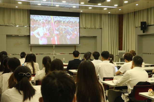 9月3日上午,敬文书院精心组织全院师生多渠道收看“纪念中国人民抗日战争暨世界反法西斯战争胜利80周年大会”现场直播,共同回顾峥嵘岁月,凝聚奋进力量。在分析测试中心103报告厅,院领导、辅导员、全体学生骨干齐聚一堂,集中收看了大会盛况。报告厅内气氛庄重肃穆,师生们神情专注,认真学习习近平总书记重要讲话,深刻感悟胜利的来之不易与和平的珍贵。并在大会结束后结合实际畅谈工作设想,为建设高水平学生骨干队伍储备精神动能。院党委提前部署,广泛动员,号召全体师生党员无论身在何处,均需按时收看大会。广大学生党员积极响应,纷纷通过电视、网络直播平台等多种方式,在家中、在宿舍同步收看。虽身处不同空间,但大家通过线上交流群分享体会、表达敬意,实现了思想的同频共振,体现了党员高度的政治自觉和强烈的组织观念。此外,书院还选派了部分优秀学生代表,参与学校统一组织的集中观看活动。同学们与全校师生代表一同感受大会庄严肃穆的现场氛围,接受一次深刻的精神洗礼和爱国主义教育。观盛世阅兵,弘青年壮志。借助形式多样、立意深远的系列爱国主义教育,书院进一步强化师生的家国意识与政治信仰,激发使命感与责任感,为书院的卓越发展注入爱国思想底色,更以实践持续推进教育兴国、人才强国战略,以实际行动为中国式现代化贡献卓越敬文力量。(一审戴冠,二审刘江,三审薛深)
