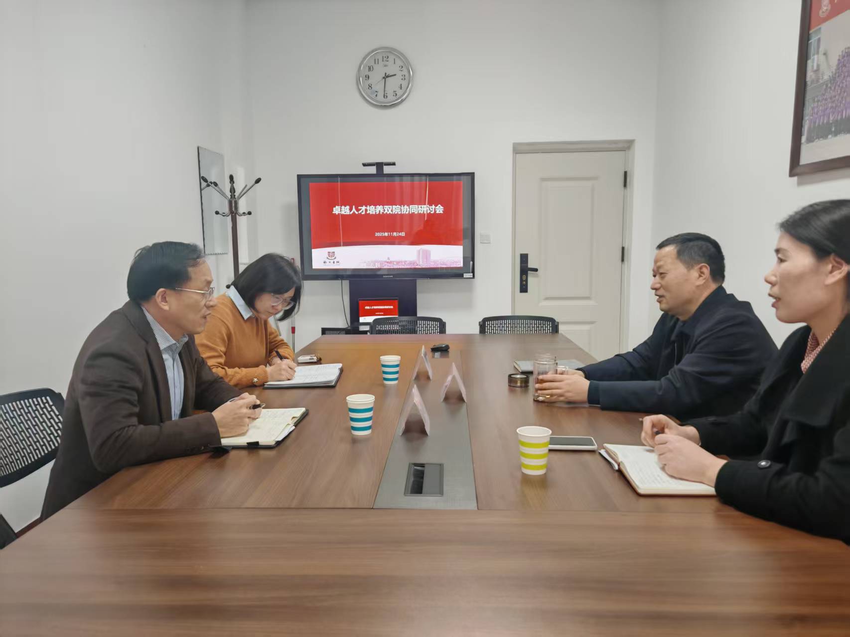 为进一步深化双院协同育人机制,推动卓越人才培养模式创新,近日,敬文书院与法学院联合召开了“卓越人才培养双院协同研讨会”。法学院院长张峰振、副院长张杰,敬文书院党委书记、院长薛深,教务办公室相晓兰参加会议。会议由薛深主持。会议围绕法学(涉外法学)专业建设、双院协同机制、教学管理优化、招生宣传与国际交流等议题展开深入研讨。张峰振院长首先介绍了法学及涉外法学专业在敬文书院的办学历程与发展现状。他指出,涉外法学专业具有全省首家、全国仅两家的专业优势,开设了全英文涉外课程,对学生外语能力要求较高,社会需求较为急切,就业前景广阔。学院将与书院一道,持续优化课程体系,致力于培养具有国际视野的卓越的法治人才。薛深对法学院在双院合作中给予的支持表示感谢,他提出,双院应始终坚持“认同一致,成果共享”的原则,加强资源整合与过程协同,共同提升人才培养质量。双方还就教育教学、招生选拔等具体问题深入交换了彼此的意见,达成了多方共识:一是持续完善涉外法学专业课程体系,推动考研指导融入日常教学;二是优化选修课教学安排与工作量认定机制;三是协同开展招生宣传,推进试点专业提前招生;四是合力推动国际交流项目落地,不断提升学生国际视野。此次研讨会进一步加强了法学院与敬文书院的沟通协作,为后续双院协同育人工作的扎实开展奠定了良好基础。双方表示,将继续秉持“以生为本、协同共进”的理念,不断创新人才培养机制,助力学生全面成长与卓越发展。(一审:李晨,二审:刘江,三审:薛深)